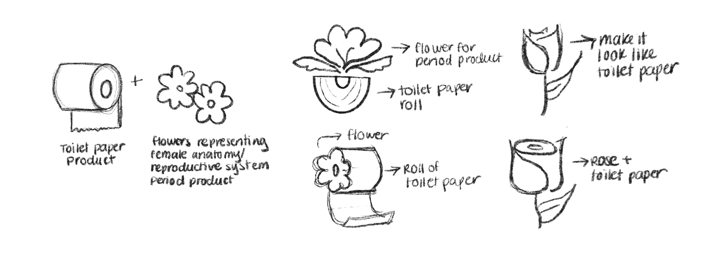 Taking inspiration from the common representation of female anatomy- a flower, I combined different drawings of flowers with the iconic design of toilet paper rolls.